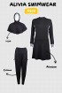 Setelan renang Muslimah dengan model two piece yang memiliki panjang baju yang aman sehingga menutupi bagian belakang, disertai dengan zipper pada bagian depan. Menggunakan material Jersey Dryfit berkualitas tinggi, yang bersifat elastis/flexibel, ringan dan lebih cepat kering. Jahitan berkualitas, kuat dan rapat.