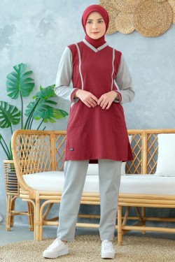Setelan olahraga terbaru dari Alivia House, Sportwear Oneset Alivia 04 merupakan setelan olahraga yang terdiri dari tunik dan celana yang dibuat khusus untuk Muslimah, dirancang dengan potongan yang longgar sehingga memberikan kenyamanan dan keleluasaan dalam bergerak.